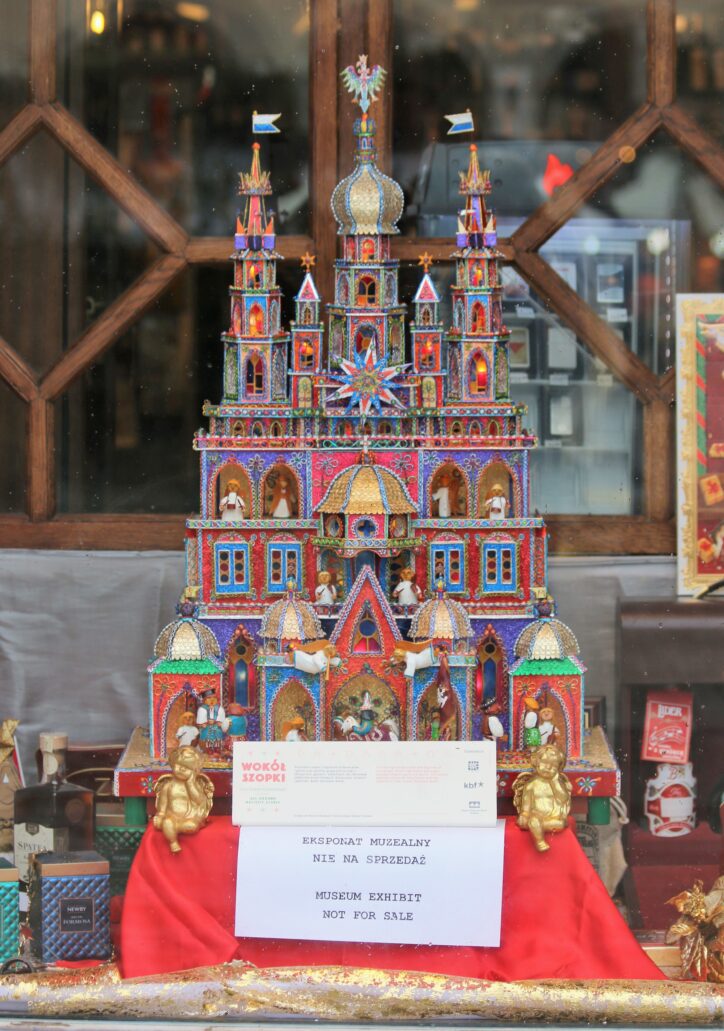 W okresie świąt Bożego Narodzenia w Krakowie niemal wszędzie spotykamy szopki. U Bernardynów przed wielką, ruchomą szopką (bo to już nie żłóbek!) przez cały dzień gromadzą się tłumy dorosłych z małymi dziećmi. Dokładnie tak jak w podziemiu warszawskiego kościoła Kapucynów. W czasie świąt równie tłumnie oglądana jest szopka wystawiana w kościele Franciszkanów. Ale to nie one są czymś unikatowym. Wyjątkowy klimat tworzą przez kilka tygodni dziesiątki dużych szopek wystawianych w przestrzeni miasta w oknach wystawowych sklepów, restauracji, czy w gablotach wprost na ulicach i placach. No i wreszcie te, które uczestnicząc w Konkursie Szopek Krakowskich (w tym roku odbyła się już jego 83 edycja!) prezentowane są w salach Pałacu Krzysztofory przy Rynku Głównym.