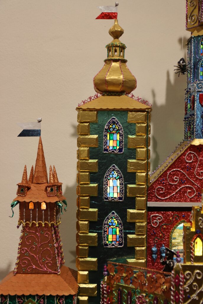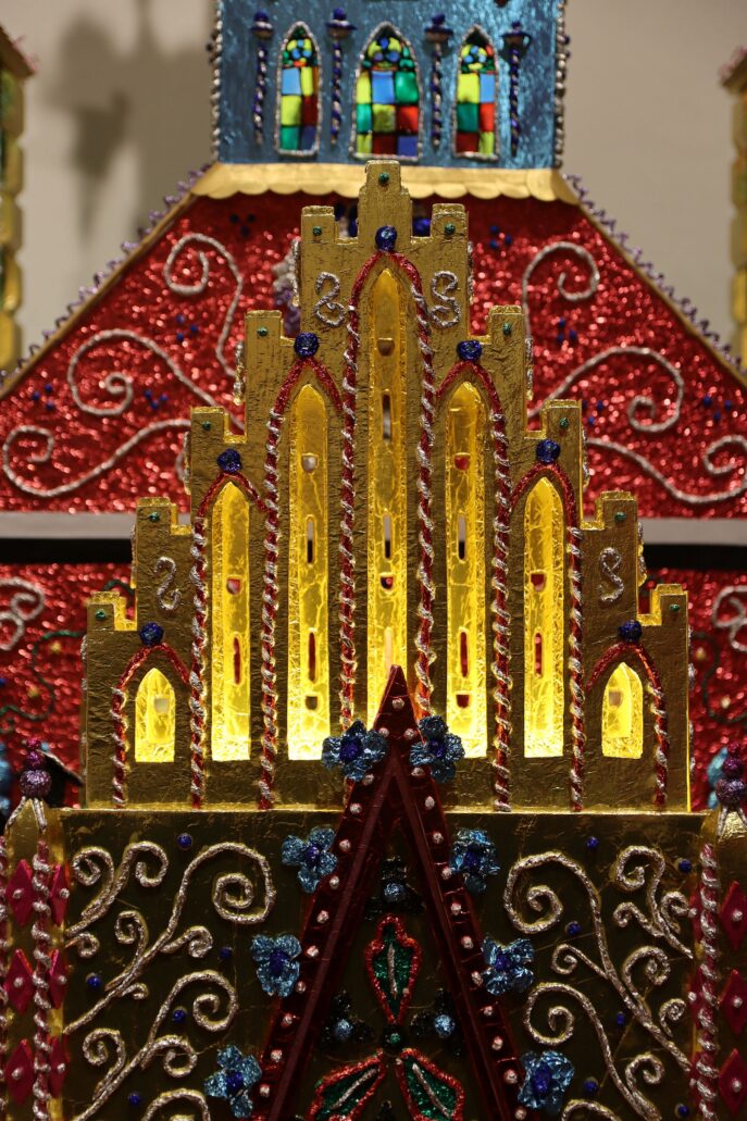 Wszystkie elementy w szopce wykonane zostały ręcznie. Konstrukcje wież, szczytów, baniastych hełmów powstały z tektury, twarze postaci wykonane zostały z modeliny i są malowane. Jak przekonują autorzy, inspirowano się przy tym malarstwem twarzy ze średniowiecznych rękopisów. Ubranka postaci zostały wydziergane na szydełku, mechanizmy ruchome skręcane są z drutu. Dekory (detale) na elewacjach „wykonane są wyłącznie z papieru, staniolu i pianki malarskiej”[4]. Wreszcie wyobrażone w szopce obrazy są ręcznie rysowane i malowane.