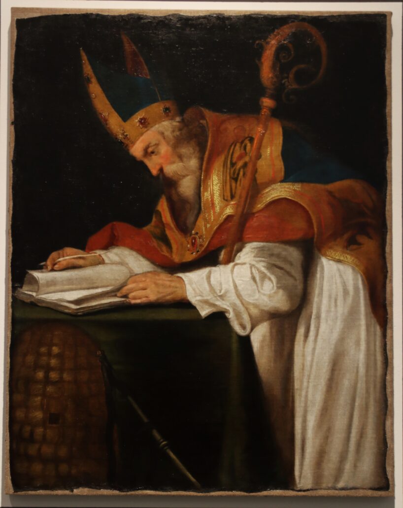 Św. Ambroży. Być może nieokreślony artysta flamandzki czynny we Włoszech. Hipotetycznie datowany na pierwszą połowę XVII wieku. W zbiorach klasztoru Wizytek w Warszawie. Fot. Jerzy S. Majewski