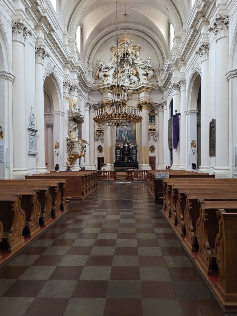 Warszawa. Kościół Wizytek. Wnętrze wypełnione ołtarzami z obrazami tworzącymi galerię o spójnym programie ikonograficznym. Fot. Jerzy S. Majewski