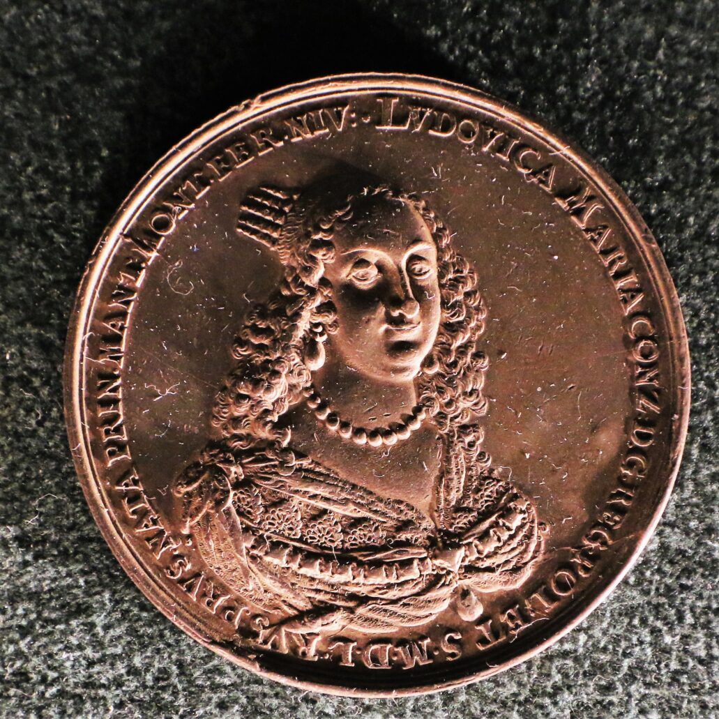 Ludwika Maria na medalu z 1649 r. Jan Höhn starszy, Sebastian Dadler. Kraków, Muzeum Emeryka Hutten Czapskiego. Fot. Jerzy S. Majewski