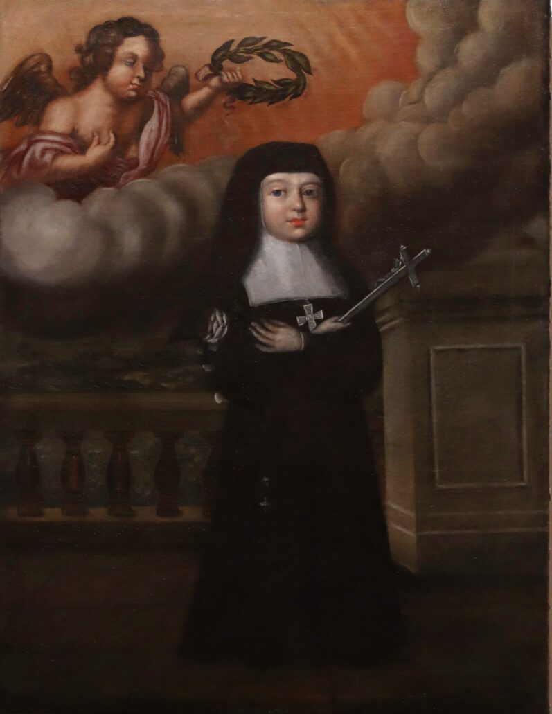 Portret Franciszki Olimpii de Conrade w stroju habitki. Przypuszczalnie warsztat warszawski, lata 80. XVII wieku. Dzięki temu portretowi przenosimy się w czasie do klasztoru wizytkowskiego. Dziewczynka jest konkretną osobą, której ojciec Karol Ludwik de Conrade związany był zarówno z dworem Wazów, jak i Sobieskich. Był medykiem królewskim. To w jego obecności umarła Ludwika Maria. Franciszka Olimpia po ukończeniu szkoły Wizytek jako habitka wstąpiła do klasztoru. Jej portret Conrade zamówił w 1679 r. i kilka lat później podarował go wizytkom z prośbą o powieszenie go w kaplicy św. Franciszka Salezego. Miało to być wotum. Przeżyła ona 27 lat, umierając w 1706 r. W zbiorach klasztoru Wizytek w Warszawie. Fot. Jerzy S. Majewski